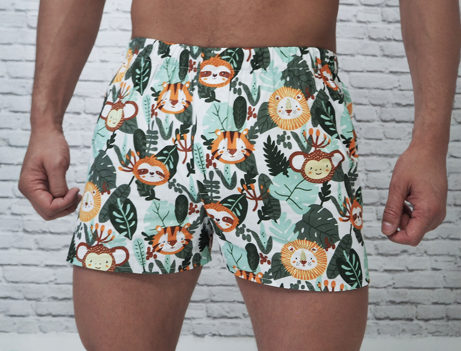 Pánské trenýrky volného střihu s unikátním potiskem džungle a praktickou zadní kapsičkou. Pohodlný a stylový kousek spodního prádla, který oceníte každý den.
