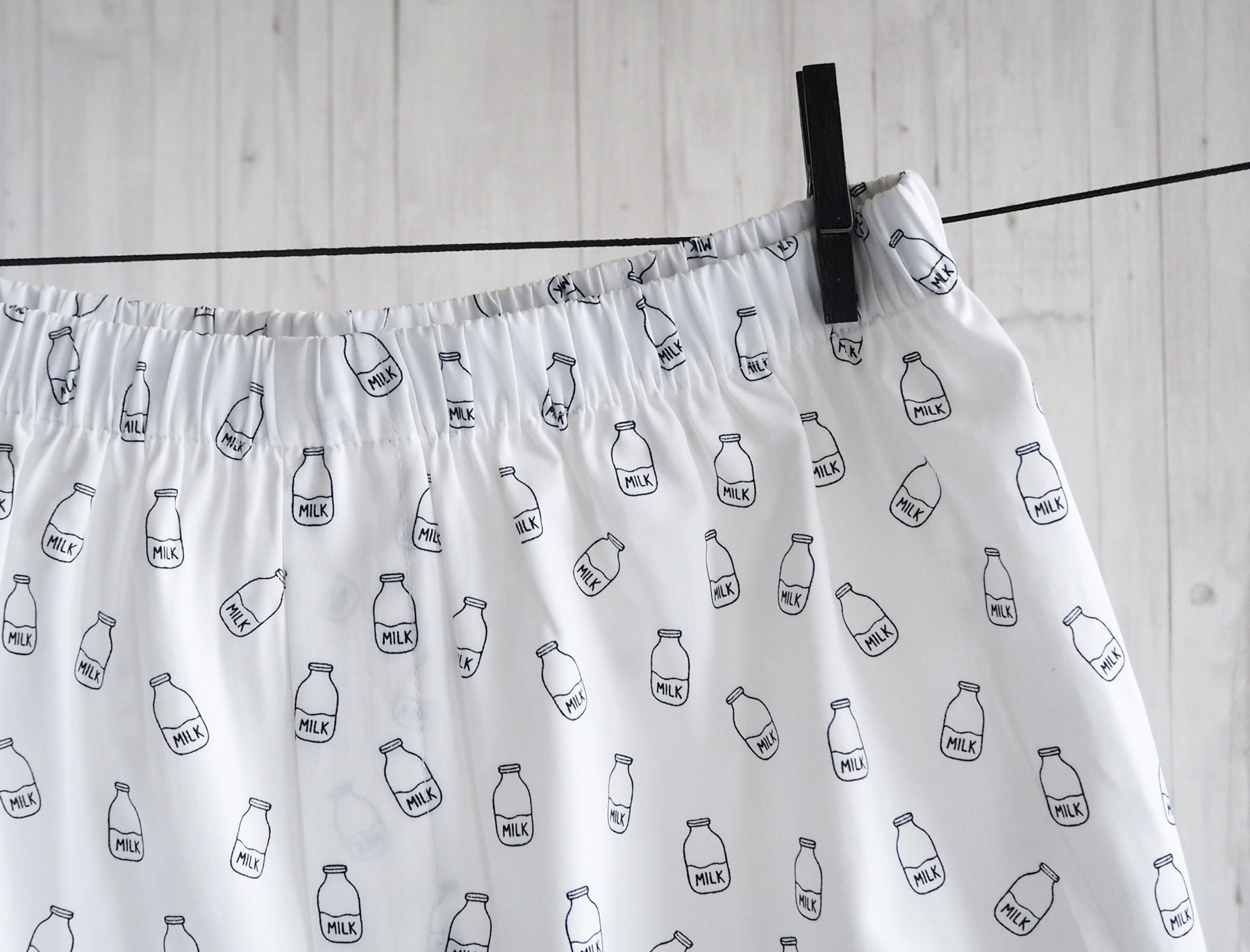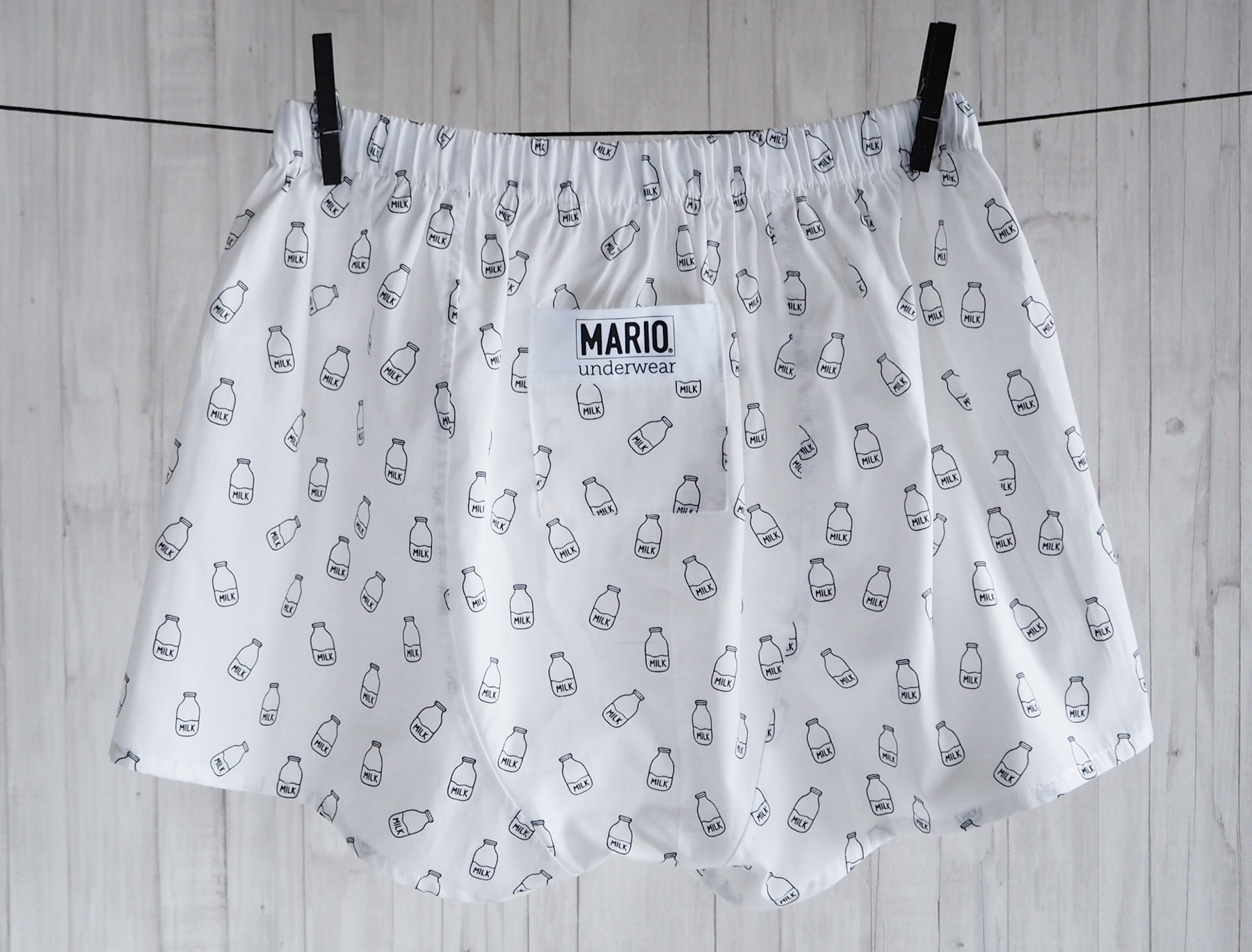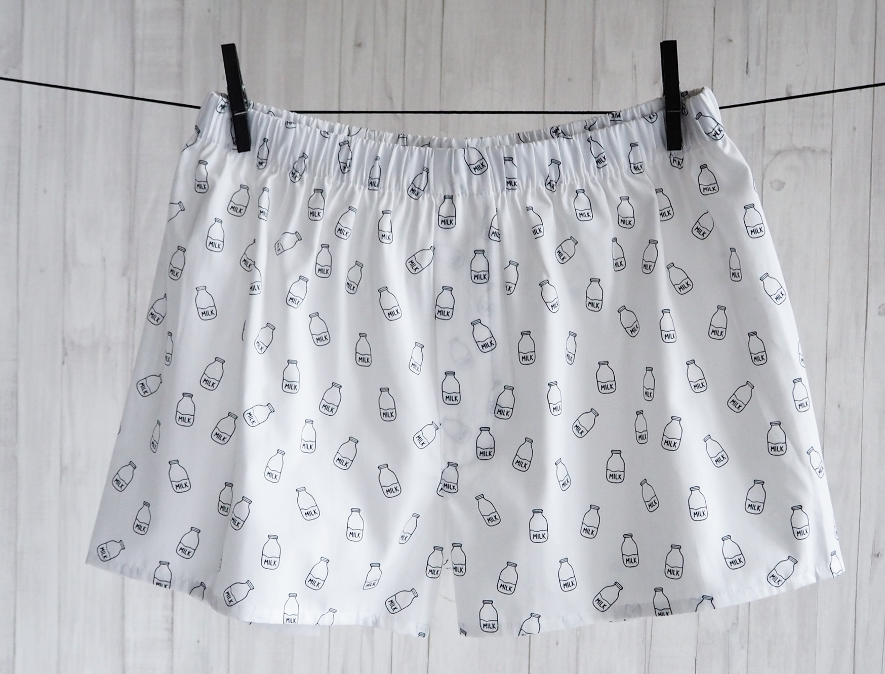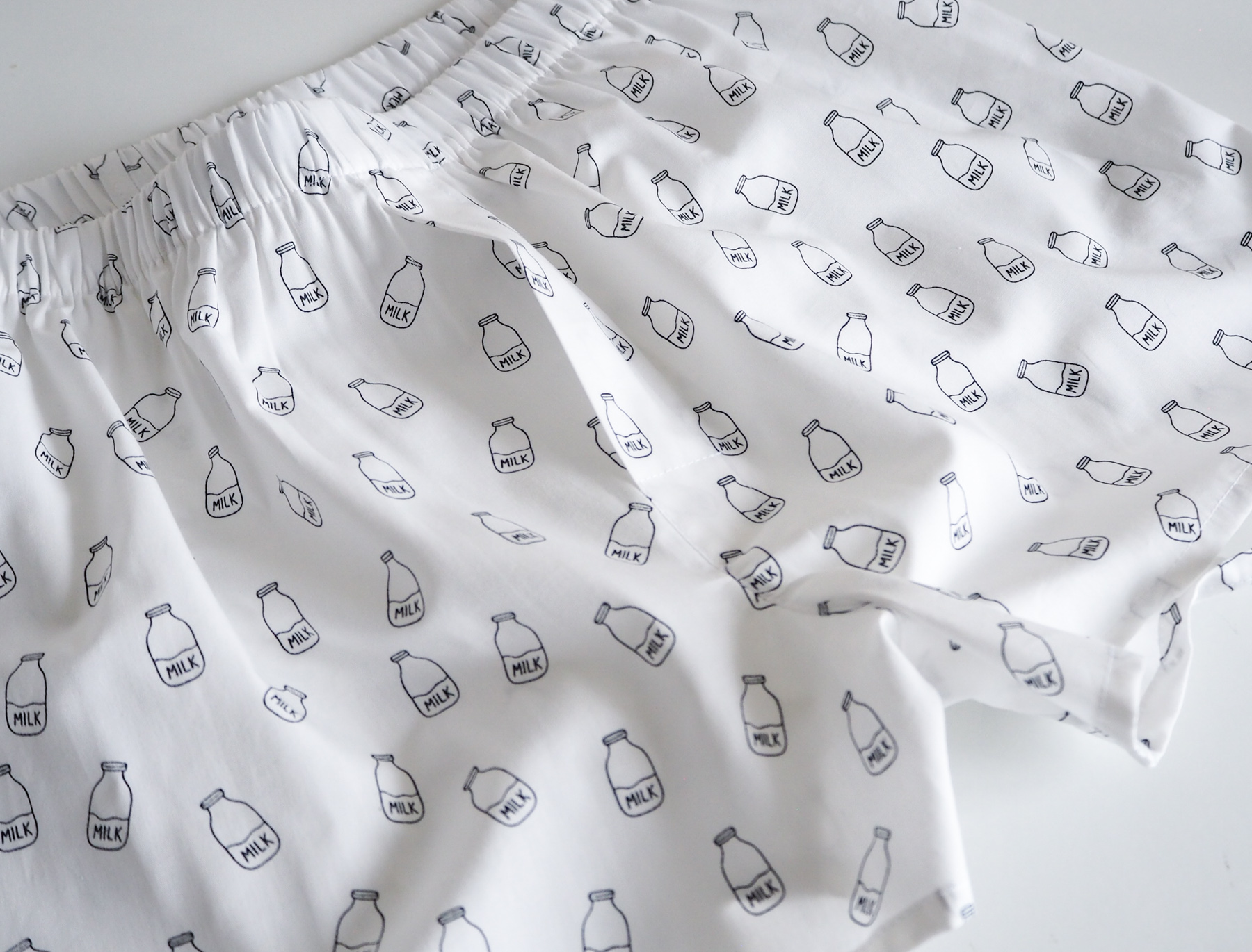 Bílé trenýrky s jemným potiskem lahve s mlékem. Pohodlný nový střih, vyšší sed a volnější nohavičky pro maximální komfort při každodenním nošení.