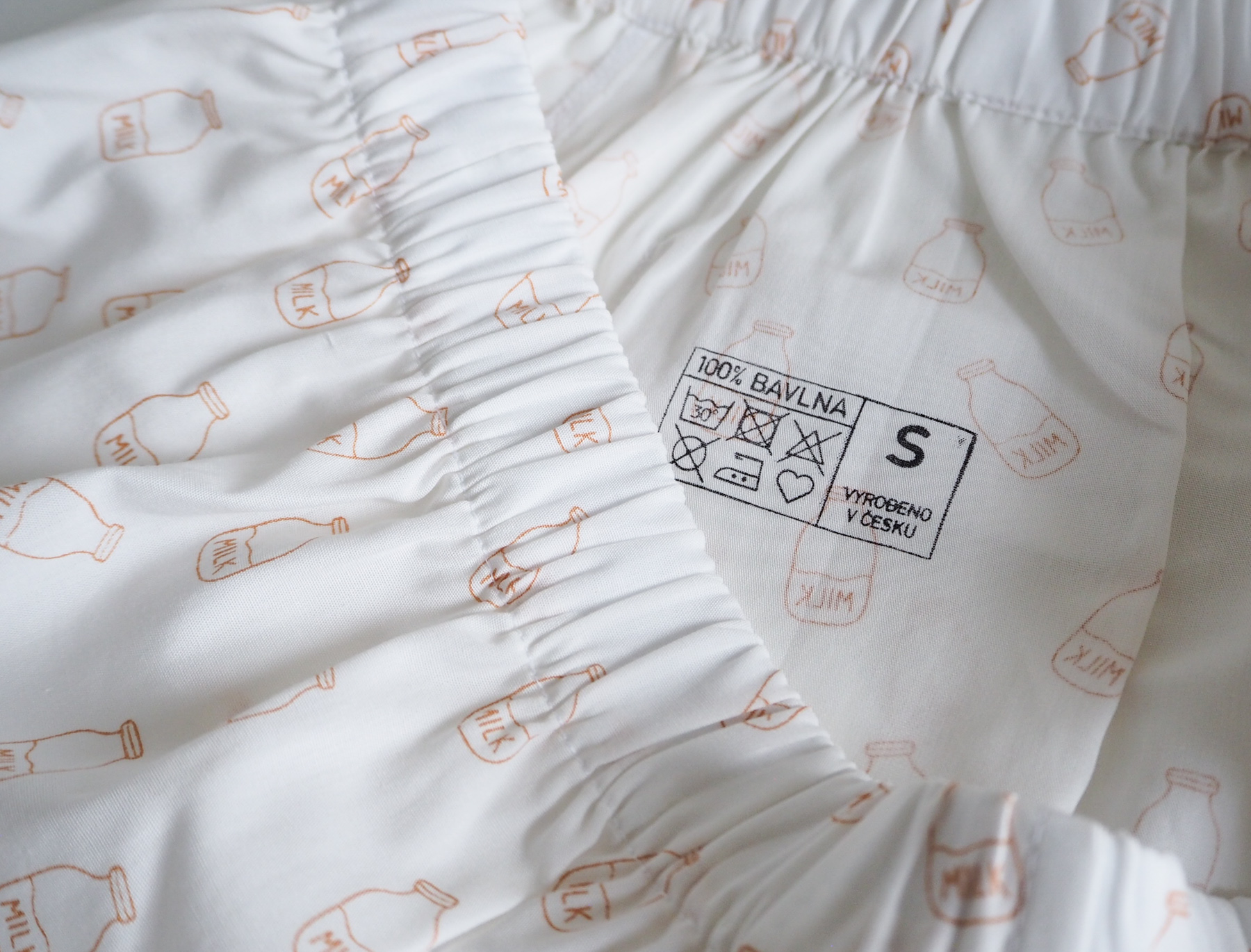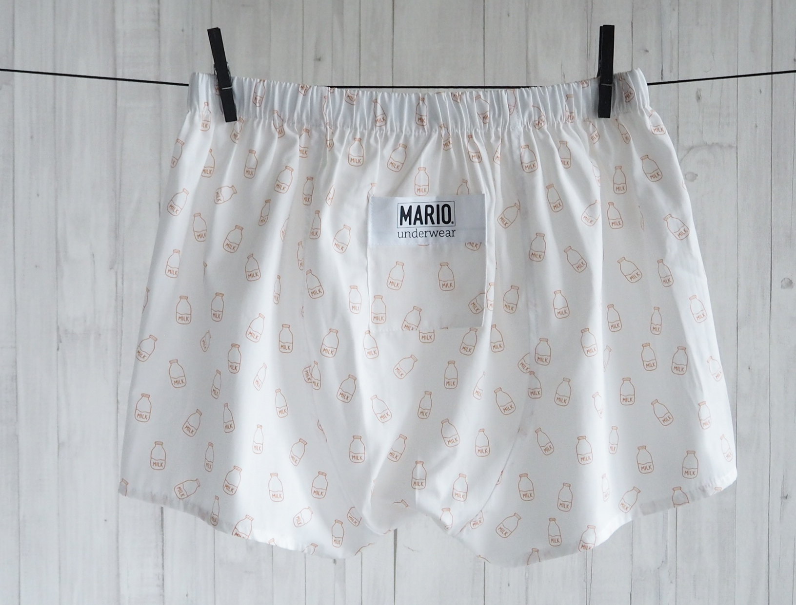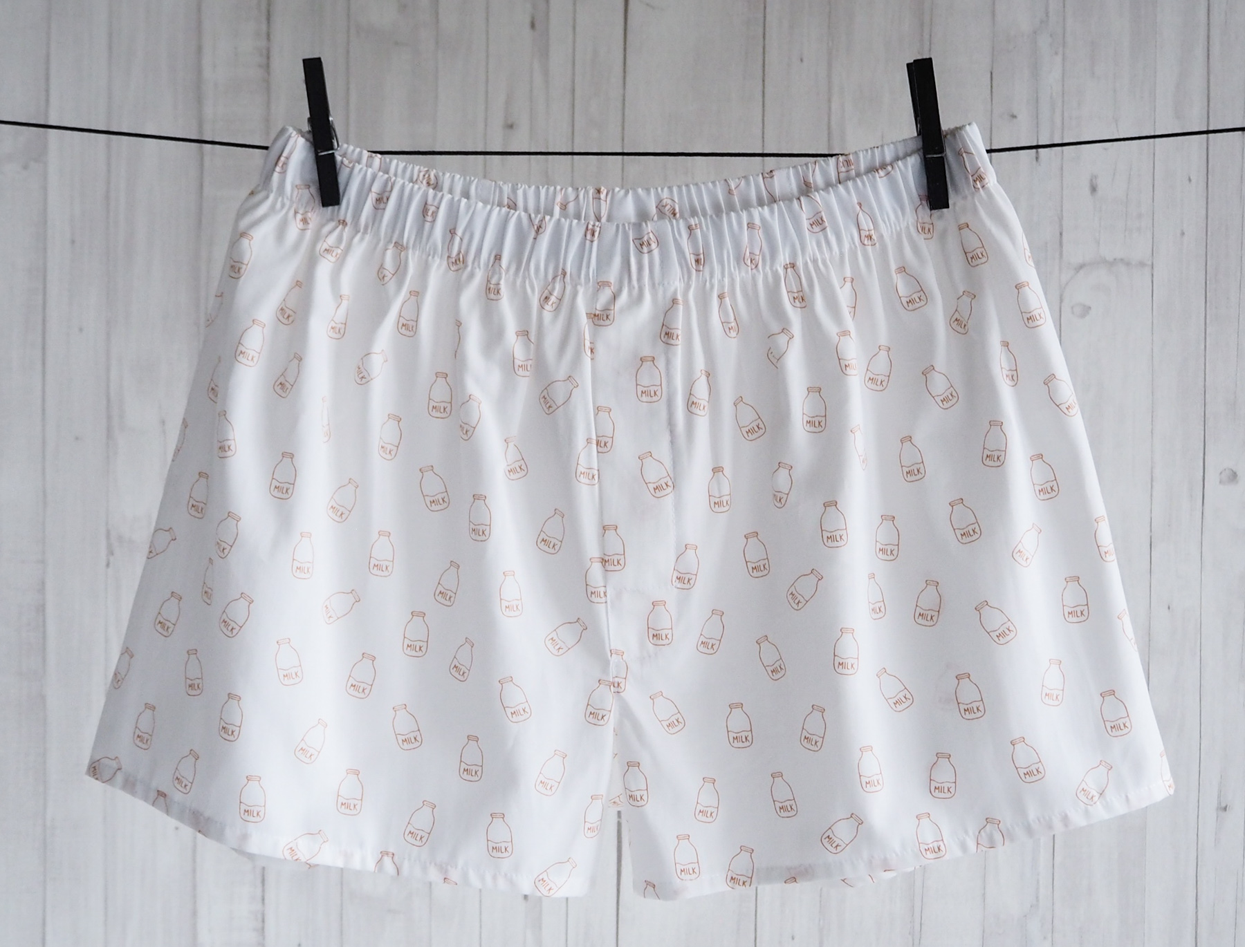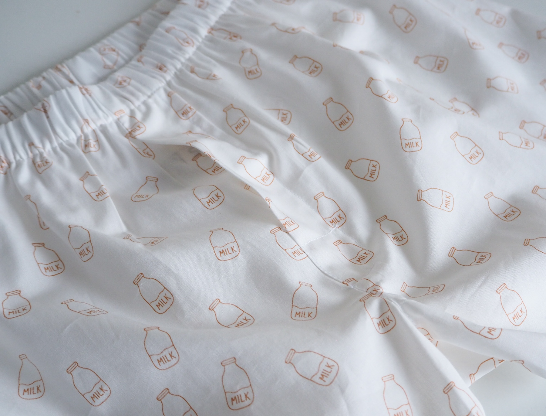 Bílé trenýrky s jemným potiskem lahve s mlékem. Pohodlný nový střih, vyšší sed a volnější nohavičky pro maximální komfort při každodenním nošení.