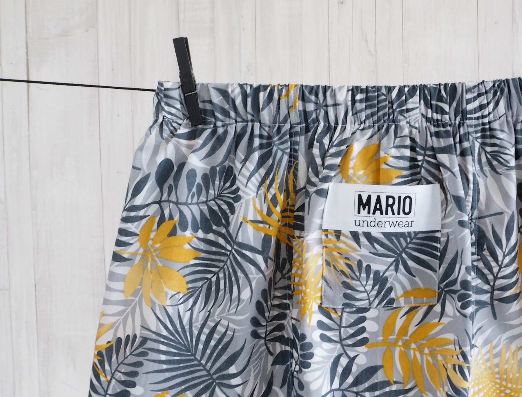 Trenky z bavlněného plátna s potiskem palmových listů. Pohodlné, prodyšné a stylové pro každý den.